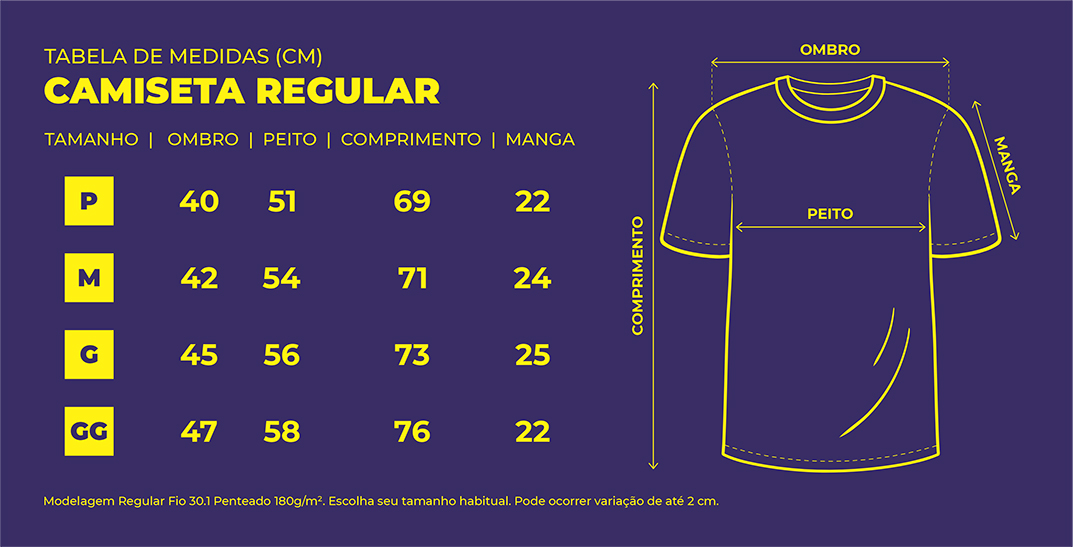 Produção nacional, malha 100% algodão fio 30.1 penteado de altíssima qualidade, pesponto reforçado na gola e reforço ombro a ombro para maior durabilidade e conforto, garantindo que sua camiseta acompanhe você em todas as batalhas da vida com estilo e resistência.