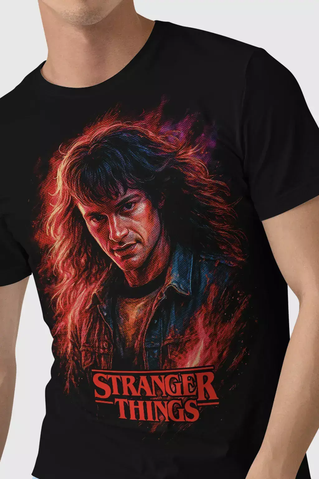 A Multverso Co. apresenta a camiseta Stranger Things Eddie, perfeita para fãs que querem o carisma rock'n'roll do Eddie Munson no streetwear geek mais autêntico. Produzida em 100% algodão penteado fio 30.1 de alta qualidade e tecido anti-pilling, acabamento reforçado e gramatura leve para conforto diário, oferece toque macio, resistência e respirabilidade ideal para o dia a dia, eventos geek ou rolês casuais com a galera.